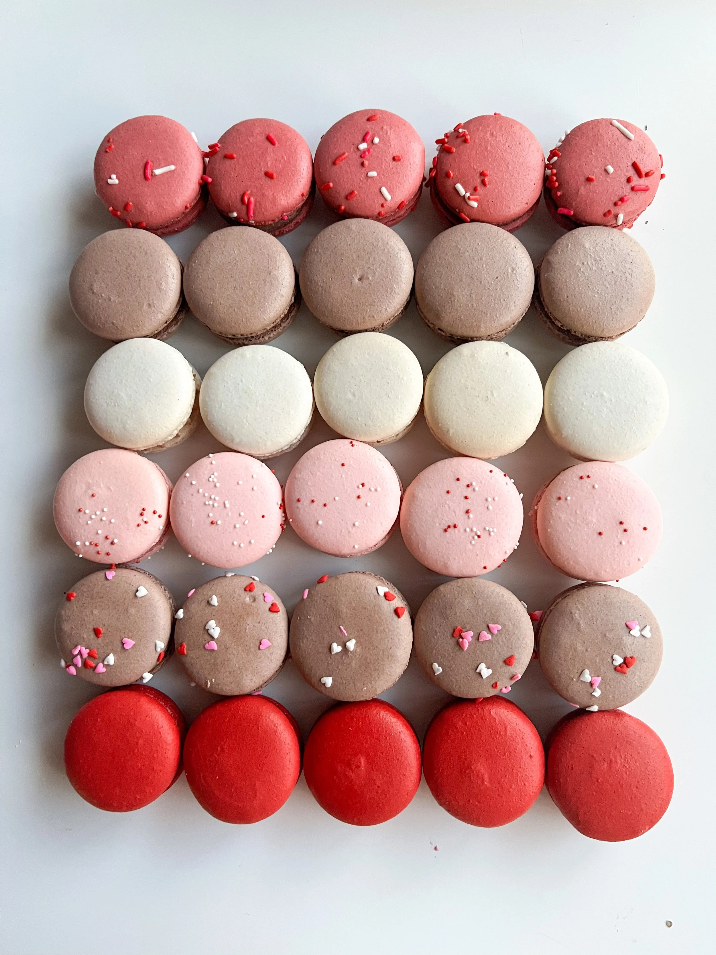 Gift Set includes four adorable Heart Macarons and Mini Strawberry Meringues all packaged with a bow! Looking for a cute gift to give? This is perfect for significant others, teachers, coworkers, and friends!